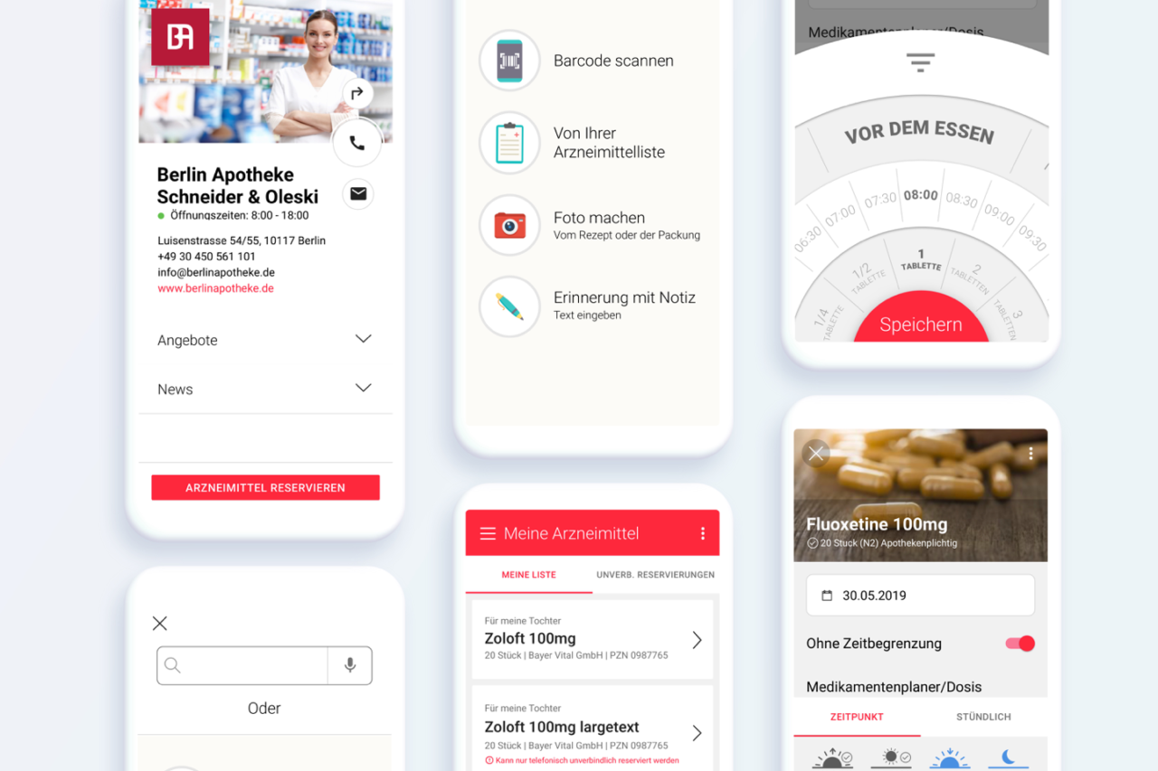 Each app is based on a white label solution that Wort&Bild Verlag makes available to its customers. Pharmacies can create their content with the help of app templates and thus create an individual app for their pharmacy in no time at all. This is then available in the App Store and provides users with essential information from the local pharmacy. In addition to the standard functions, such as the integration of individual content and the geo-based pharmacy emergency service, pharmacies can also put together their own individual app. Various modules such as medication scanner, interaction check, elixir magazine or reservation and reminder functions are available for this purpose. Each local pharmacy can bring the standard version for iOS and Android as a smartphone app or the individual app additionally as an iOS tablet app to the App Store. The main focus of the redesign was to improve usability, enabling pharmacies to put together their online services even more easily and quickly.