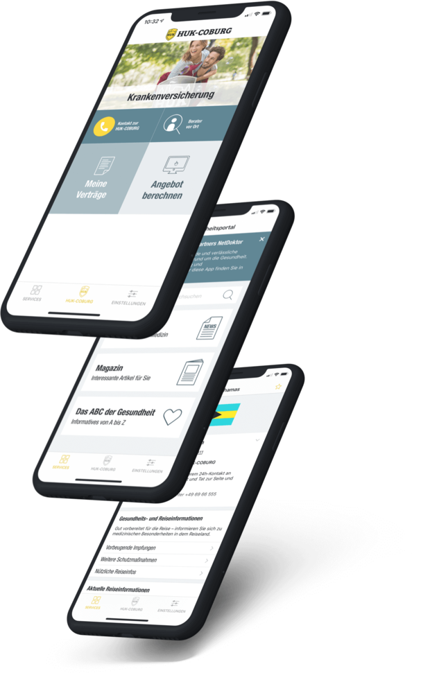 With the app “Meine Gesundheit” (My Health), HUK-COBURG is following this trend by serving its customers both as an advisor, self-management tool and provider of interactive services in health matters. In cooperation with Neofonie, what started out as a pure source of information about traveling abroad has developed into a digital companion that functions in both a preventive and a caring form.