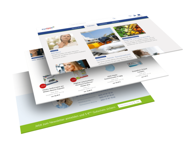 Der neue Onlineshop von eurapon überzeugt durch Produktvielfalt, Services und frischem Design. Der Nutzer erhält zahlreiche Informationen und Produkte zu den Themen Gesundheit, Ernährung und Pflege und kann auch rezeptpflichtige Medikamente bestellen. Technisch basiert der Onlineshop auf Shopware 5.2., in das die Onsite Suche Fact-Finder und das ERP System Microsoft Navision angebunden wurden.