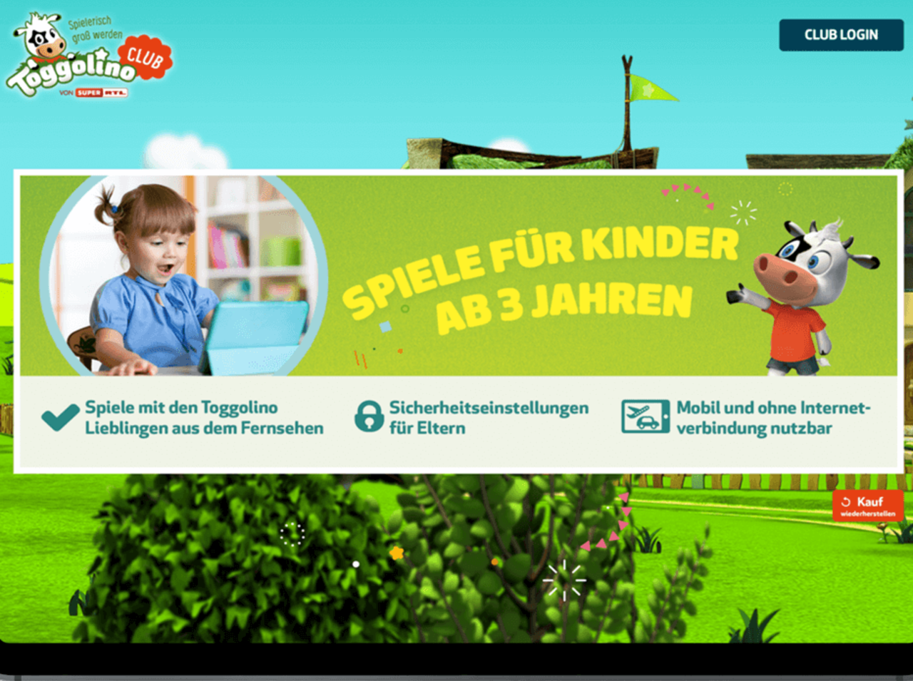 Der Toggolino Club von SUPER RTL ist eine edukative Spiele- und Lernplattform für Kinder ab 3 Jahren. Gemeinsam mit den SUPER RTL Helden werden Kinder im Vorschulalter in über 120 Spielen spielerisch in verschiedene Bereiche wie Rechnen und Schreiben eingeführt. Im Zuge der Neugestaltung für die Website wurden zunächst Tablets und schließlich auch Smartphones unterstützt. Die nativen Apps für Android und iOS beiten eine hervorragende Nutzerfreundlichkeit. Die dynamisch nachladbaren HTML5 Spiele bieten eine Interoperabilität und senken somit den Entwicklungsaufwand.