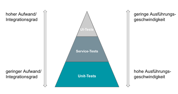 Der Aufwand für automatisierte Tests steigt mit der Komplexität. Tests für individuelle Anpassungen, beispielsweise des User Interfaces sind hierbei am aufwändigsten, während im Rahmen von Continiouse Delivery automatisierte Tests einfach zu integrieren sind und sich hoch skalieren lassen.